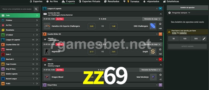 O zz69 oferece uma grande seleção de opções de apostas em e-sports com probabilidades competitivas